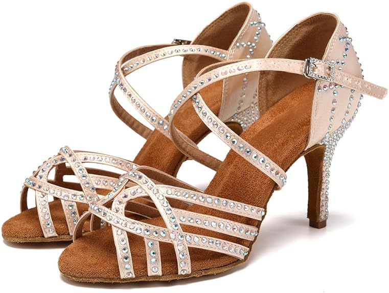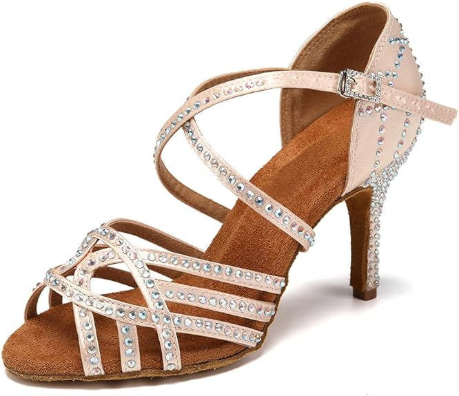 Sparkly Dance Shoes Nude Rhinestone for Salsa Latin Bachata Dance
