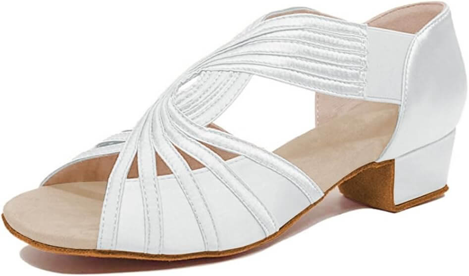 White Ballroom Latin Swing Dance Shoes Low Heels