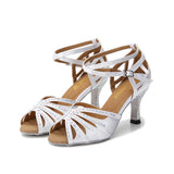 White Satin Diamante Ballroom Dance Shoes Latin Salsa Wedding Dance Shoes