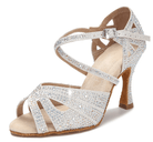 Womens Latin Dance Shoes Silver Rhinestone Salsa Shoes